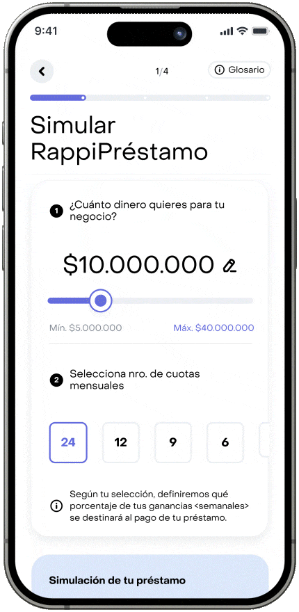 Decide el monto y selecciona el número de cuotas para impulsar el crecimiento de tu negocio.